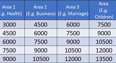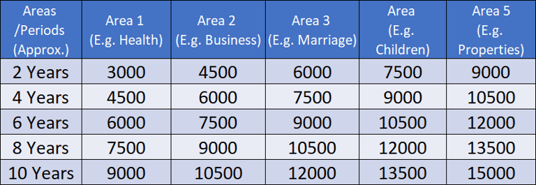 Any 2 areas for 4 years = Rs. 6,000 Any 3 areas for 6 years = Rs. 9,000